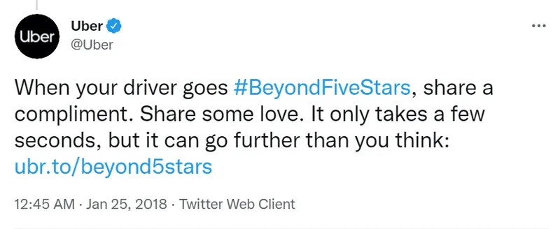 Uber encouraged customers to share remarkable experiences with Uber drivers across all social media platforms using the hashtag #BeyondFiveStars.